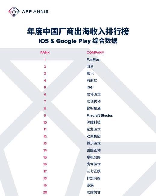 月日发布了年度全球发行商强以及年度中国厂商出海强两份榜单在全球榜单里我们可以看到冠军和亚军都被中国发行商给夺走了它们分别是我们大家都熟知的腾讯和网易年度全球发行